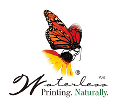 当社で印刷をしていただくと水なし印刷方式を使用したことを示すバタフライマークを印刷物に掲示できます。