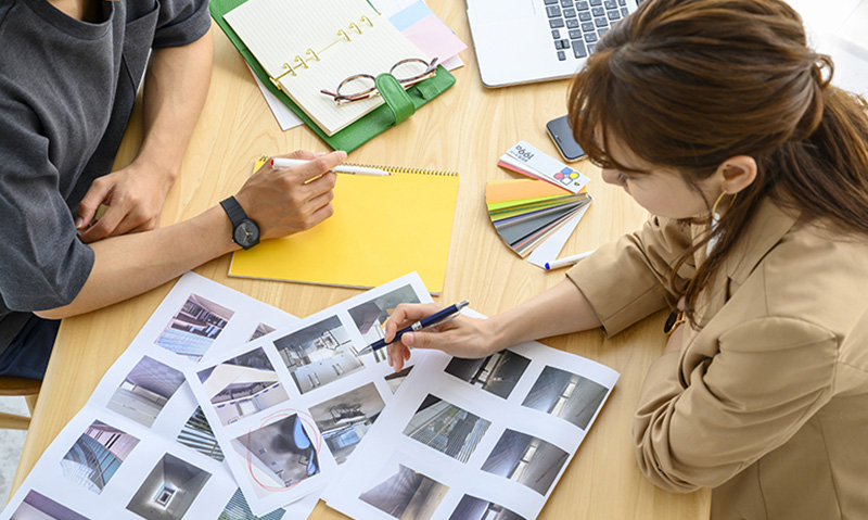 お客様の製品を企画する段階からデザインスタッフと印刷スタッフが関わりながら、コミュニケーションを密にし、お客様の製品をより効果的に社会市場に発信することに取り組んでいます。